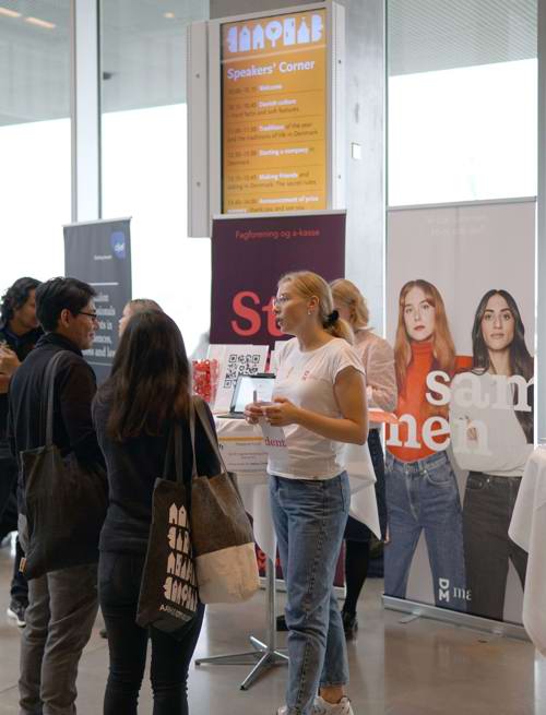 Visit the Information Bazar to meet more than 40 unique organisations, dive into inspiring talks and performances at Speakers' Corner, and meet experienced internationals at the Library Library ready to share their best advice on how to navigate and enjoy life in Aarhus!